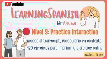 Stop knowing Spanish and START SPEAKING IT! Get instant access to the Full Library of Transcripts, Vocab Kits, AND Interactive Practice for only $10.99/month. (BEST VALUE!)